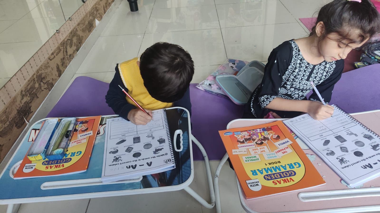 This English learning course is designed to help children build strong basics in sounds, reading, and grammar. Through fun activities and guided practice, students improve their vocabulary, pronunciation, reading confidence, and sentence formation in an engaging offline classroom environment.