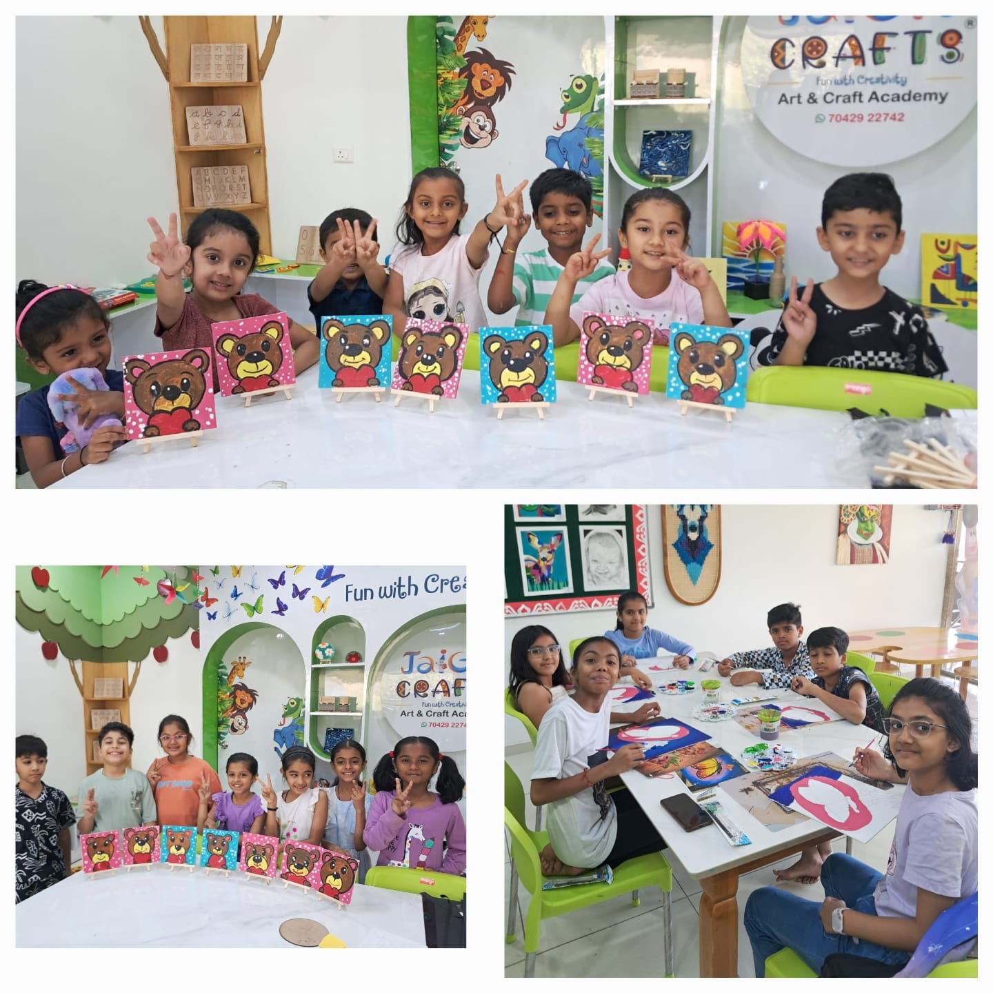 JaiGit Crafts Art & Craft Academy "Crafting your Ideas" Our Mission The true sign of intelligence is imagination and we at JaiGit Crafts foster it through art and craft. Our skillfully designed courses equips your child to develop their fine motor skills and enhance their creative problem solving. It also allows them to express their emotions and ideas in a positive and healthy way. Courses Available: *Drawing *Origami *Creative Crafts *Clay Art *Canvas painting *Fabric painting * Cursive hand writing #Batches available for all age groups Child will learn Innovative and creative Art & Craft from experienced teachers. #Theme based Workshops on every Sunday! Regular Timings : 4:00 -8:00 PM (3 days per week