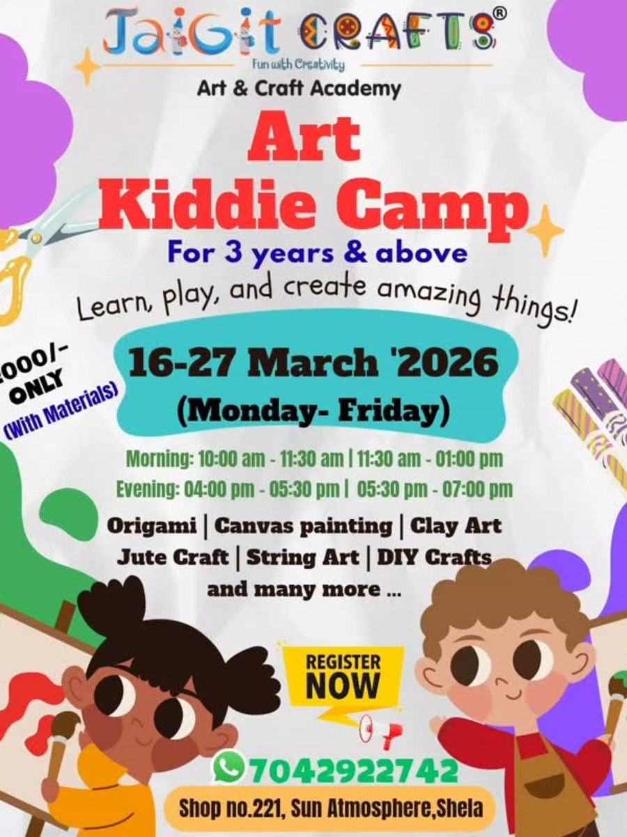 Activities IncludedOrigamiCanvas paintingClay ArtJute CraftString ArtDIY Crafts and many more...
