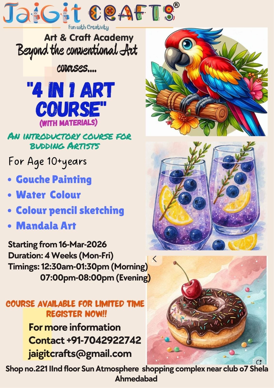 "4 IN 1 ART COURSE":Gouache PaintingWater ColourColour pencil sketchingMandala Art