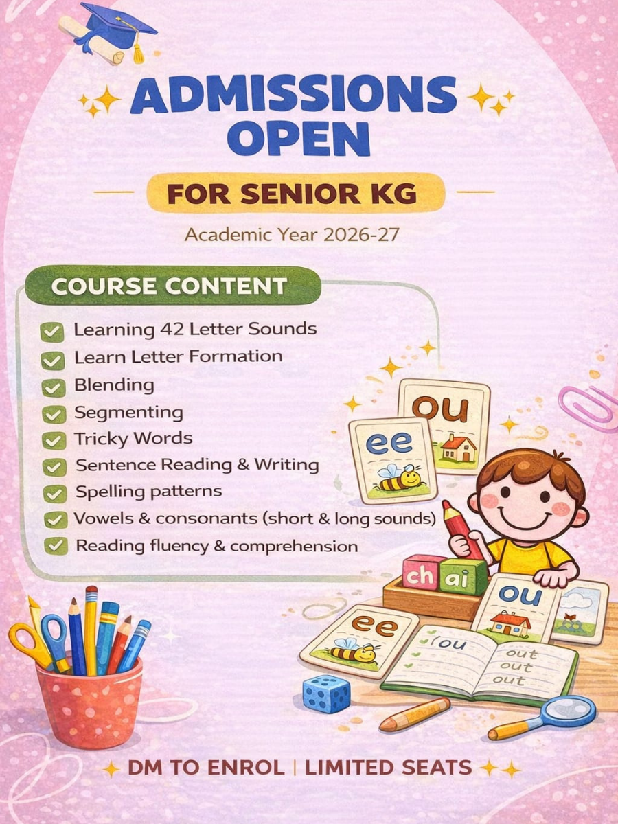 📖 Strong phonics foundation🔤 Letter sounds → word building✏️ Reading & writing readiness👧👦 Small groups, individual attention📚 Learning through warmth & routine⏰ Confidence, not pressure 🤍Because early learning should feelsafe • joyful • meaningful