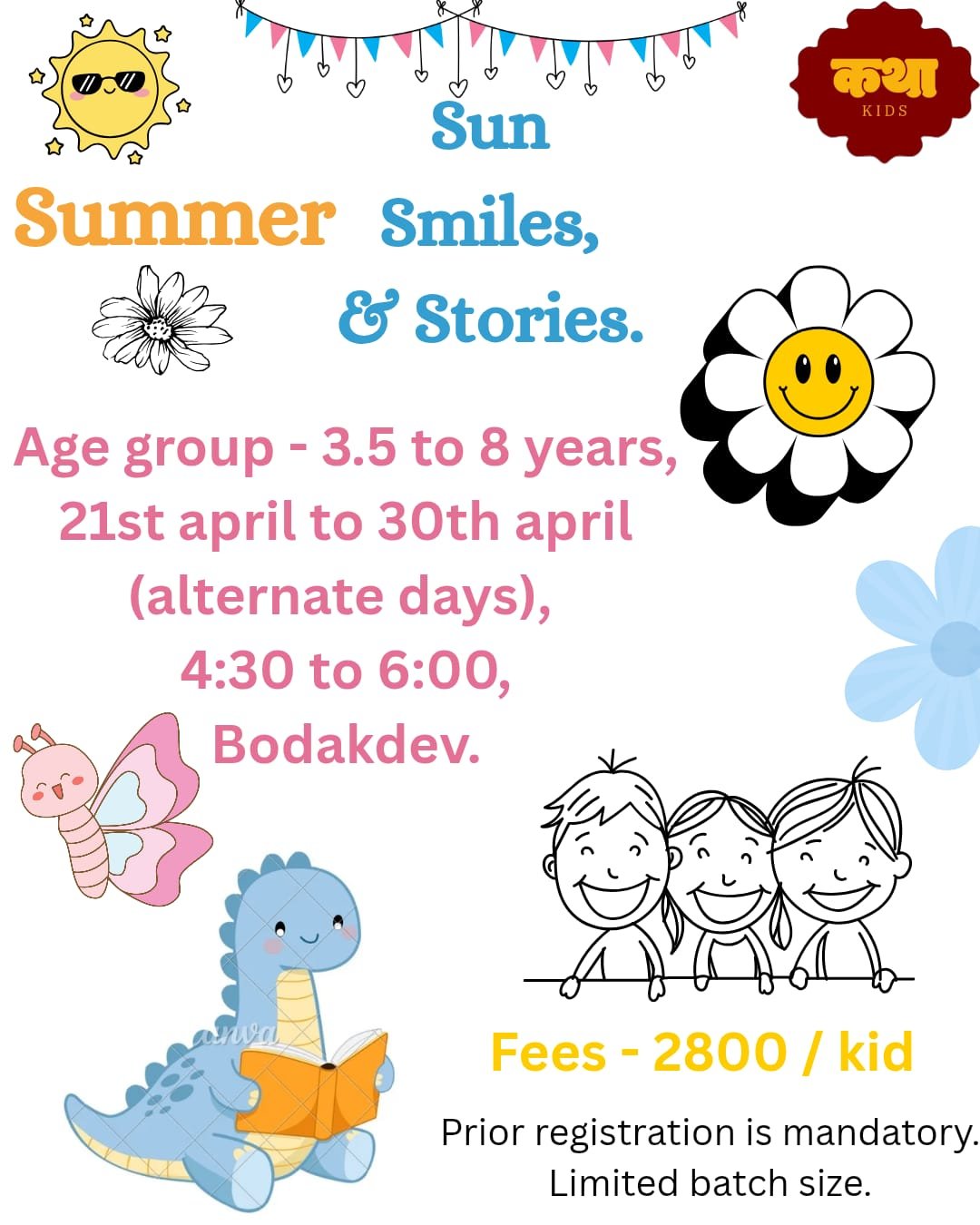 Summer sun, smiles and stories with Kathaakids, where " Learning meets Values meets Fun "After endless queries, we are coming up with our first summer workshop, with mythology stories, art-work and a book to treasure for life.Our workshop will be a 5 session class, 1.5 hour each, every session will be dedicated to one God with its stories and art work.All the students will be getting personalised book containing the art work done by them and summary of all the sessions on the last day of the workshop.Limited batch size.It will be one and half hour class.No maids/parents allowed.Prior registration is mandatory.All the inquisitive cats are welcomed to join us.DM for registration.