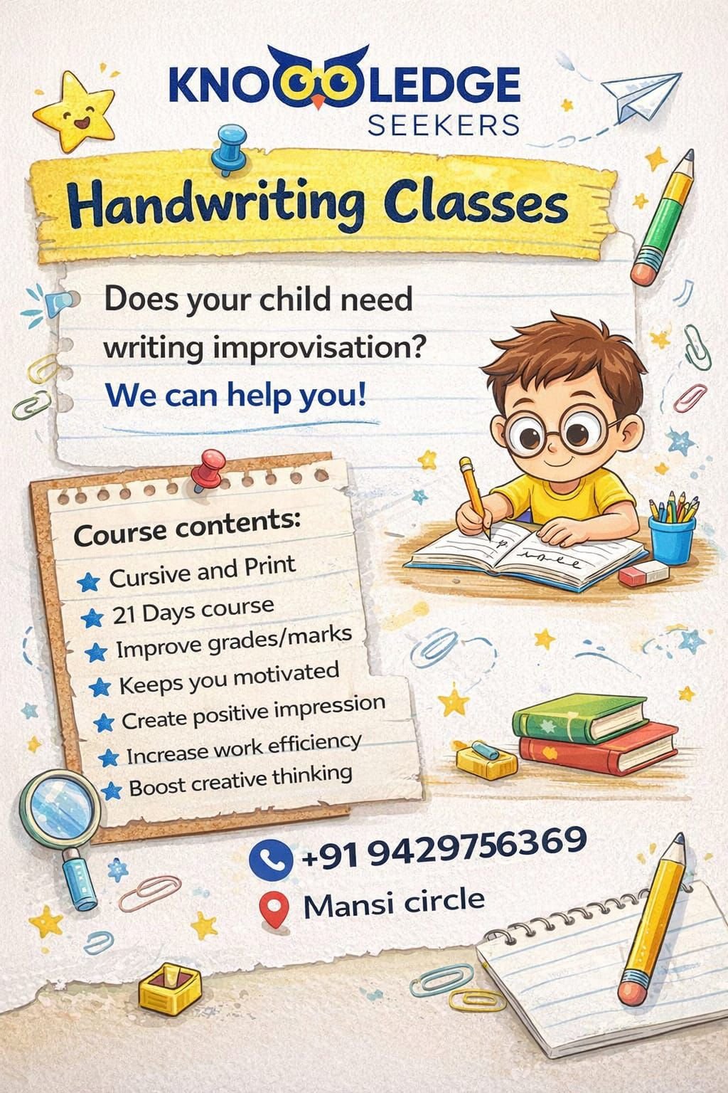 - She runs her institute, Knowledge Seekers, at Mansi Circle, Sunrise Shopping Mall, where she works closely with students aged 4 to 15 years in a warm, supportive, and encouraging environment.