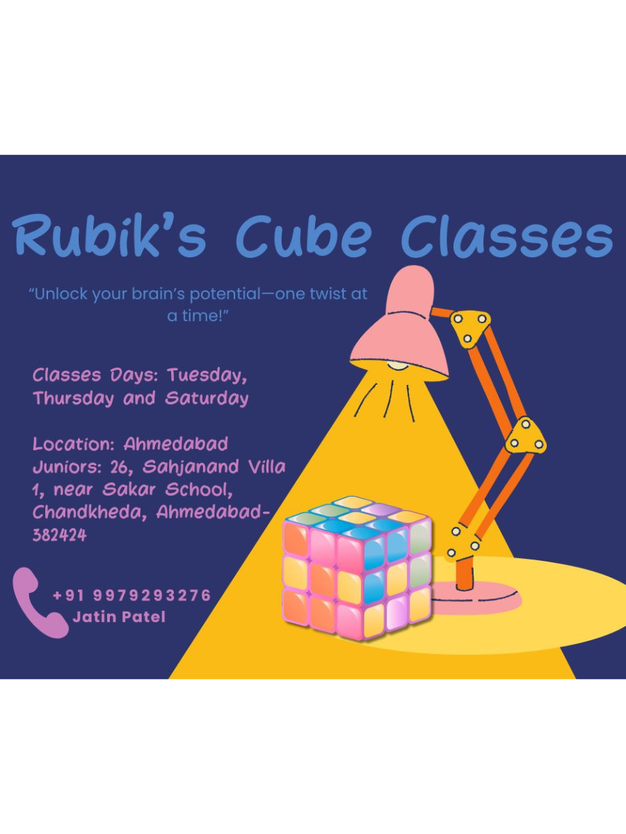 Unlock your brainβs potential β one twist at a time!Location:Ahmedabad Juniors 26, Sahjanand Villa 1, Near Sakar School, Chandkheda, Ahmedabad β 382424π Contact:Jatin Patel : - +91 99792 93276