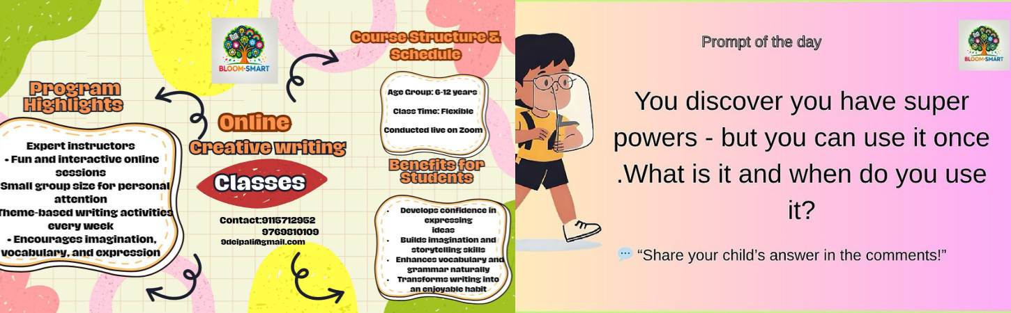 Bloom Smart | Nurturing Young Minds Empowering children through Creative Writing Workshops (Online, 6-12 yrs) & Abacus Training. Think Creatively | Count Confidential | Learn Joyfully