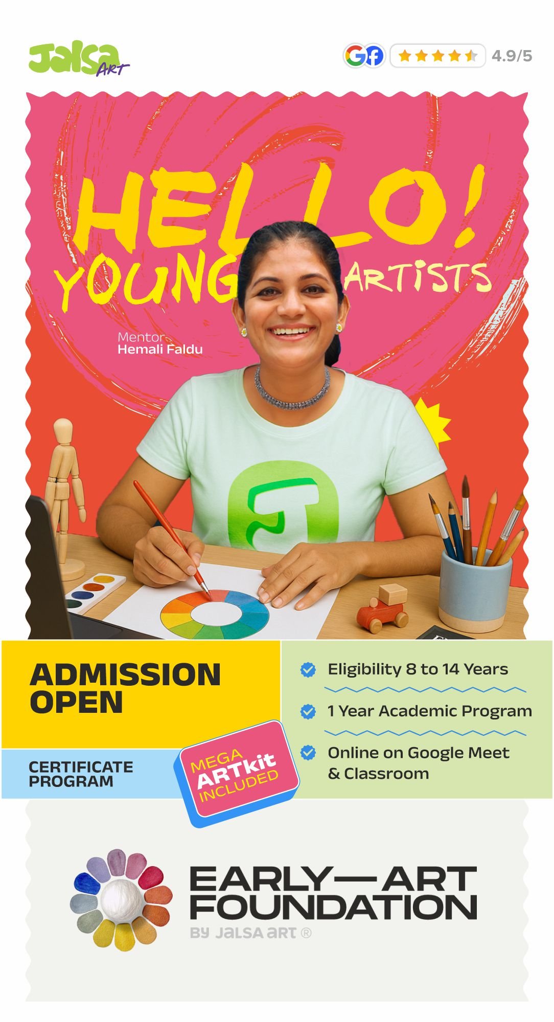 At JALSA, art is more than an activity - it’s a transformative experience. we are passionate about making art an integral part of life. Our diverse range of programs, community initiatives, and creative tools are designed to spark imagination, nurture talent, and bring people together through the power of art. Online Programs | DIY Kits | Corporate Workshops Events & Fests | Community Engagements
