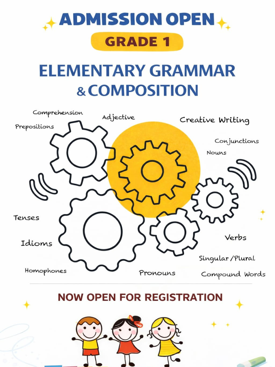 Topics : Comprehension, Prepositions, Adjectives, Creative Writing, Conjunctions, Nouns, Verbs, Tenses, Idioms, Homophones, Pronouns, Singular/Plural, Compound Words
