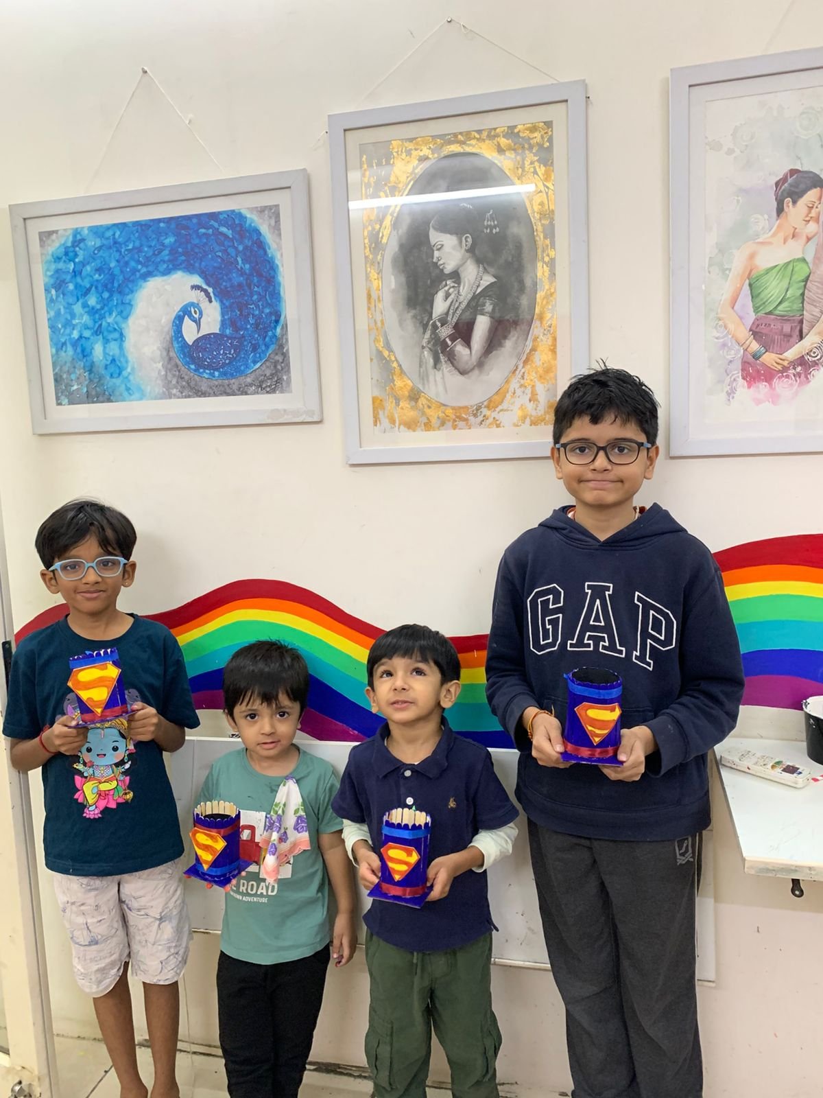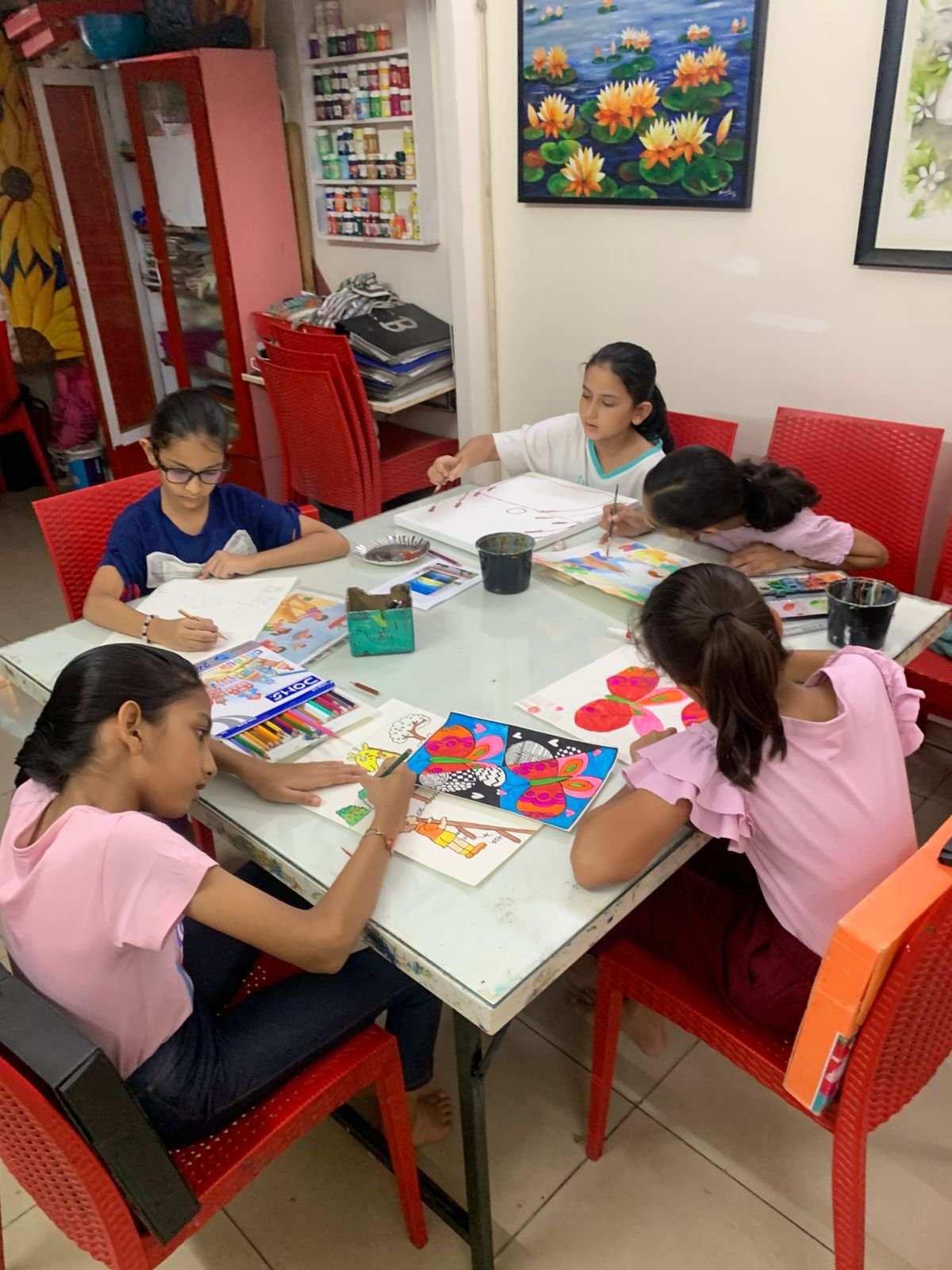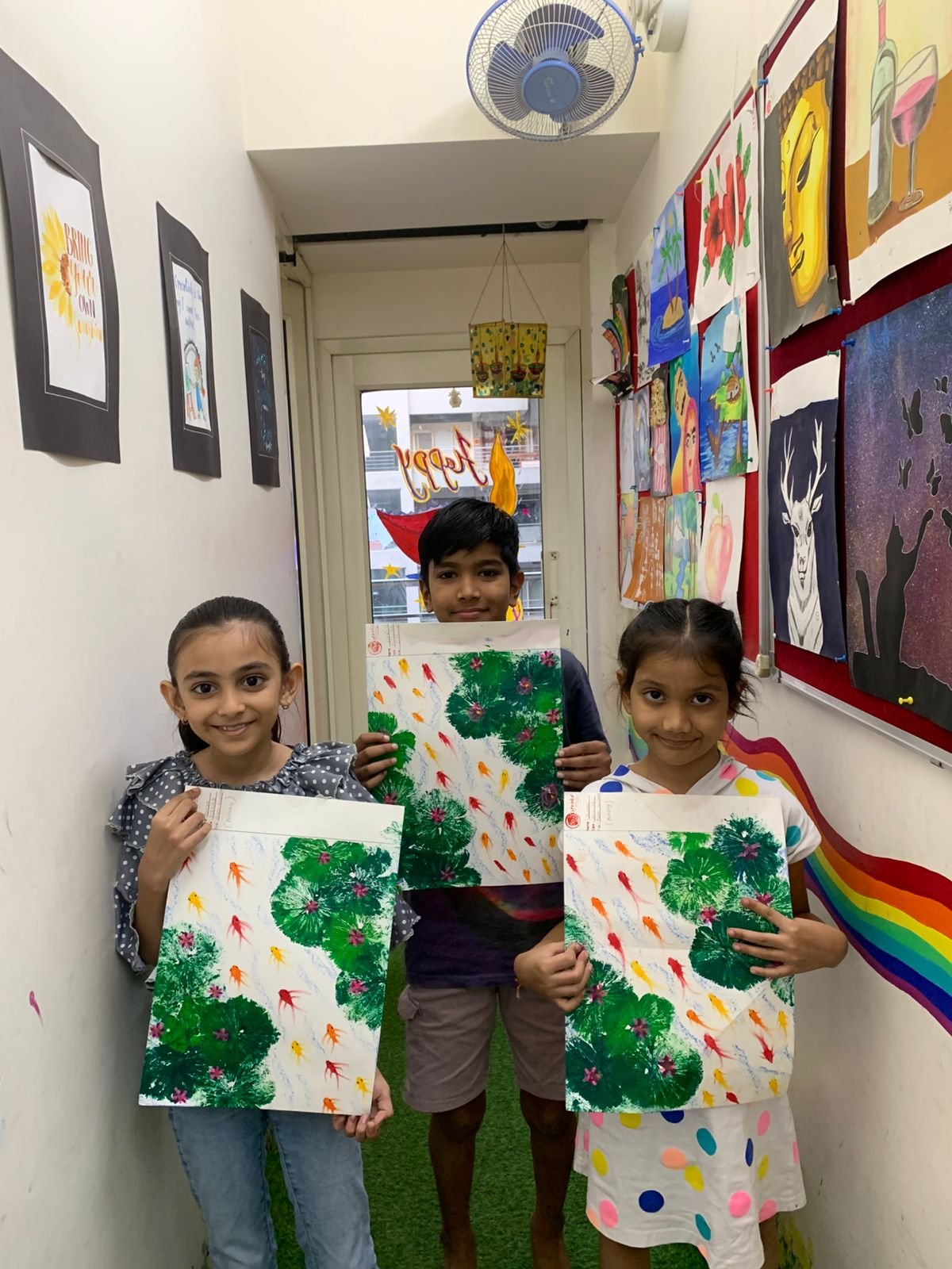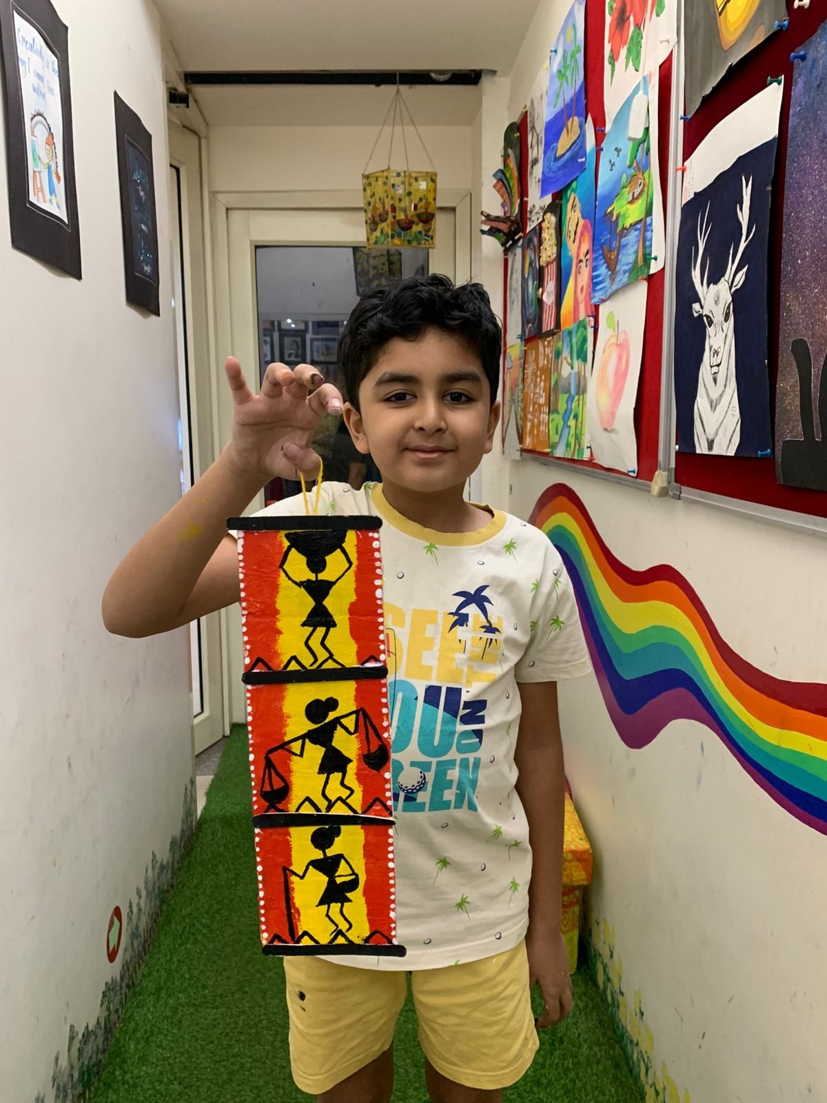 Painting Activities➤ Tissue paper Art➤ Golden Foil Painting➤ Letter Art➤ Print Painting (with stencils)➤ Card making➤ Spray painting➤ Cartoon drawing➤ Bubble sheet art➤ 3D City scape➤ Canvas painting➤ Wall hanging Warli Art➤ Aluminum Foil 3D painting
