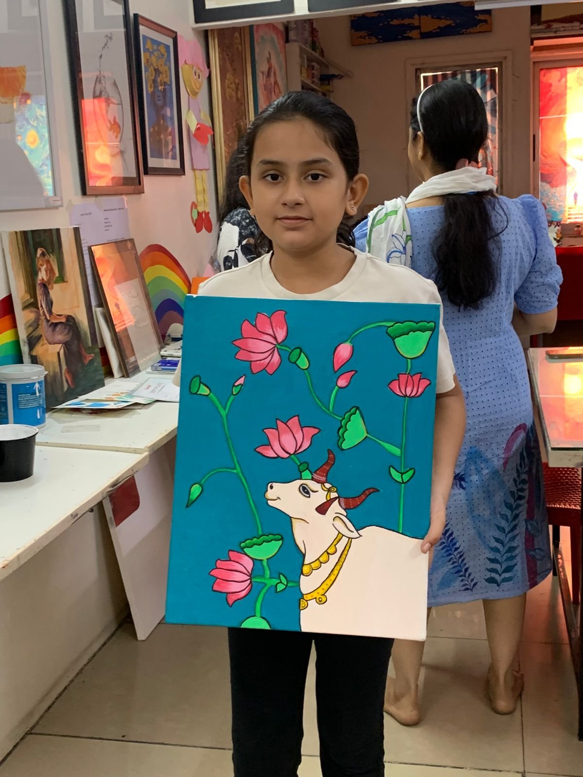 Free Hand Line ExerciseColor Theory & TechniquesPencil shadingSimple compositionObject drawingArt & craft activitiesCartoon drawingLandscape, Cityscape, SeascapeFestival & Cultural ArtTraditional Art formsBasic Human figure & PortraitPen & ink PaintingCourse OutcomesKids will develop:• Strong drawing + coloring skills• Understanding of art techniques• Creativity & concept development• Confidence in character creation• Exposure to Indian folk art• Ability to complete long-term projects