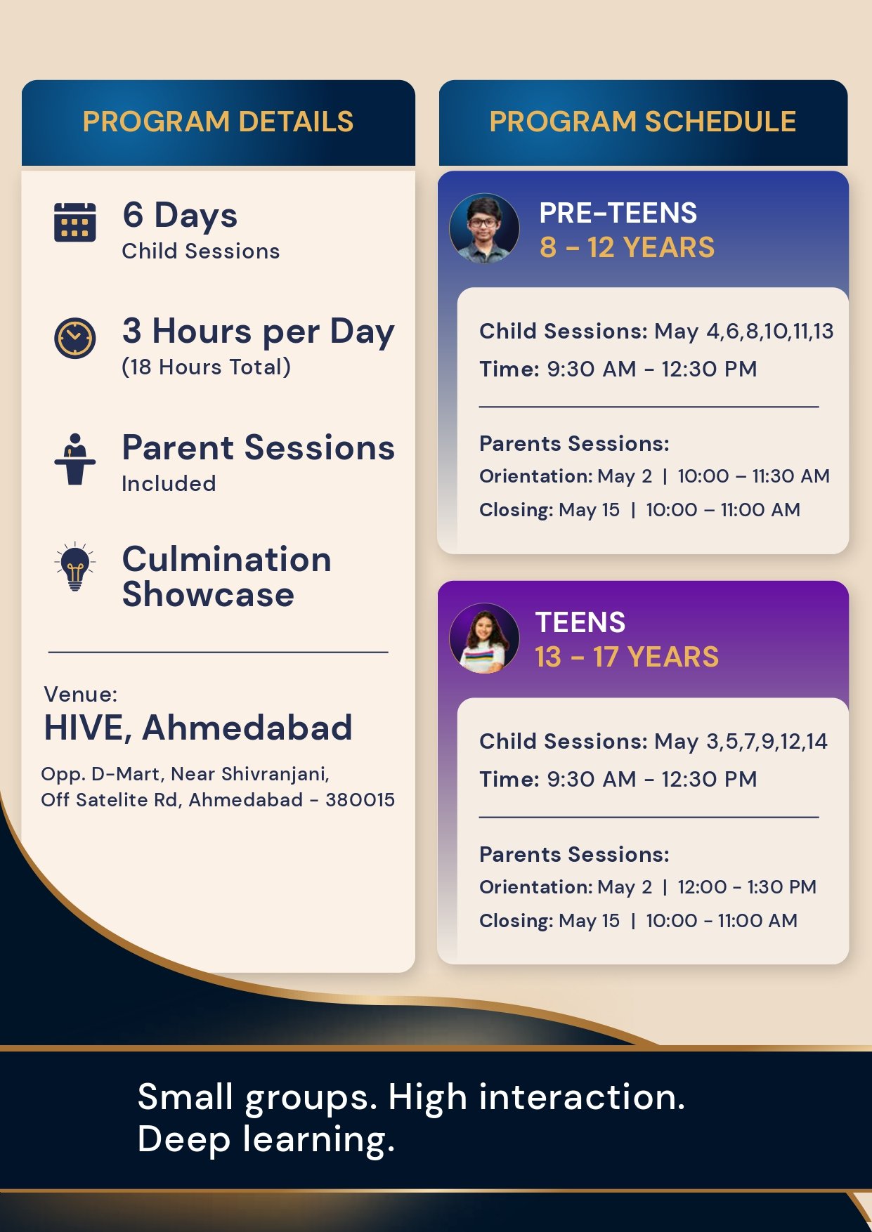 Introducing The Self Lab — a 6-day intensive mentoring programme designed to help children build focus, emotional strength & self-awareness through real-life tools and guided experiences.Not just activities, this is a transformation journey where children learn to understand their emotions, think clearly, communicate better, and make confident decisions🌱 Key takeaways:* Emotional awareness & regulation* Focus, discipline & learning skills* Confidence & self-expression* Decision-making & problem-solving* Real-life communication tools👧👦 Age Groups:* Pre-teens: 8–12 yrs* Teens: 13–17 yrs📅 Dates:* Pre-teens: May 4, 6, 8, 10, 11, 13* Teens: May 3, 5, 7, 9, 12, 14⏰ Time: 9:30 AM – 12:30 PM📍 Venue: The Hive👨👩👧 Includes parent orientation & closing sessions💰 Fees: ₹9,999✨ Early access: ₹7,999 | Sibling discount available⚡ Limited seats (small group experience)📩 DM to register / know more