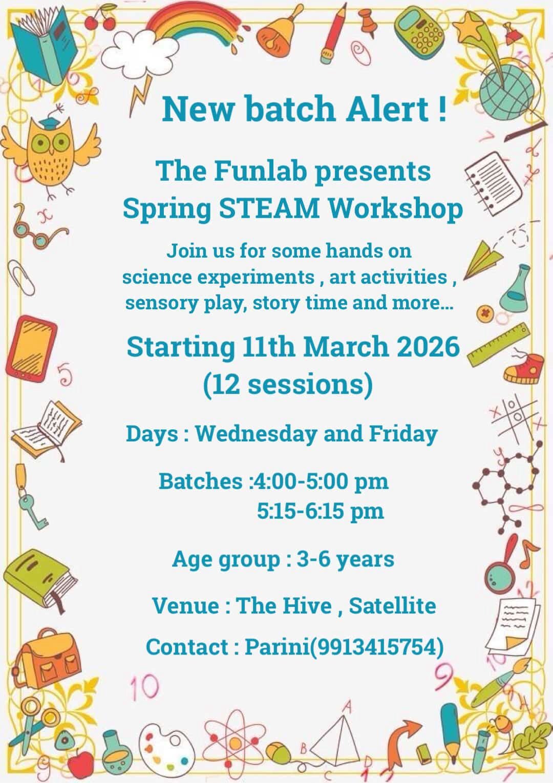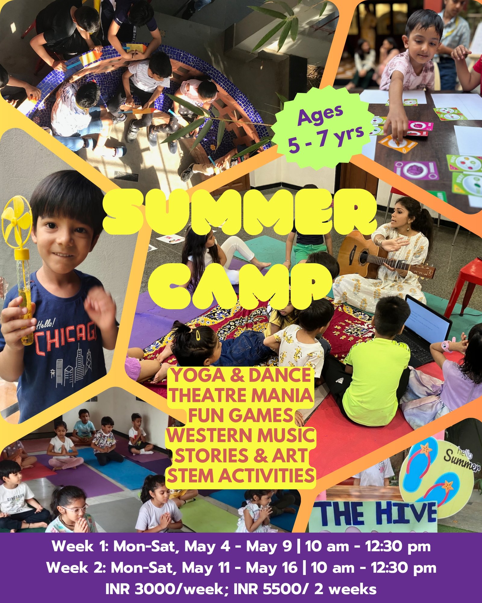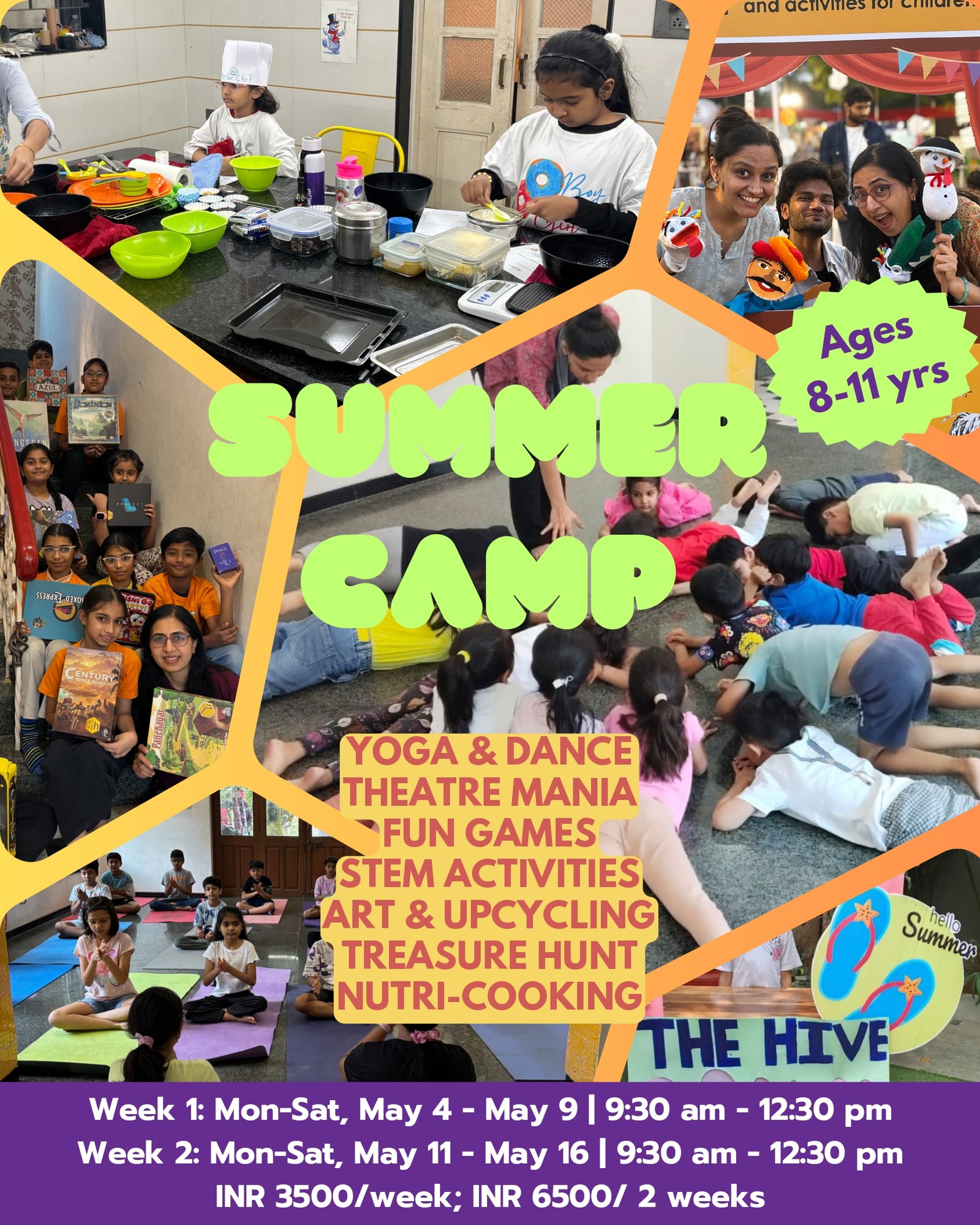 ☀️ Summer at The Hive is here!A vibrant mix of exploration, play, creativity, and real-world experiences—designed to get kids off screens and into meaningful, hands-on learning 🌿🌈 Ages 5–7 yrs🌟 What’s in store?* Yoga & Dance for joyful movement* Theatre Mania for expression & confidence* Fun Games to build social & thinking skills* Western Music for rhythm & play* Stories & Art for imagination* Simple STEM activities for curious minds👧👦 Age: 5–7 yrs📅 Dates:Week 1: May 4–9Week 2: May 11–16⏰ Time: 10:00 AM – 12:30 PM💰 ₹3000/week | ₹5500 (2 weeks)📍 Venue: The Hive🚀 Ages 8–11 yrs🌟 Highlights:* Yoga & Dance for energy & balance* Theatre Mania for storytelling & expression* Strategy-based Fun Games* STEM activities for problem-solving* Arts & Upcycling for creative making* Treasure Hunts for teamwork & thrill* Nutri-Cooking for hands-on life skills👧👦 Age: 8–11 yrs📅 Dates:Week 1: May 4–9Week 2: May 11–16⏰ Time: 9:30 AM – 12:30 PM💰 ₹3500/week | ₹6500 (2 weeks) ⚡ Limited seats. Register at:https://forms.gle/VQYkLgbkMeHuX1GFA📩 DM 98983-38683 for inquiries.