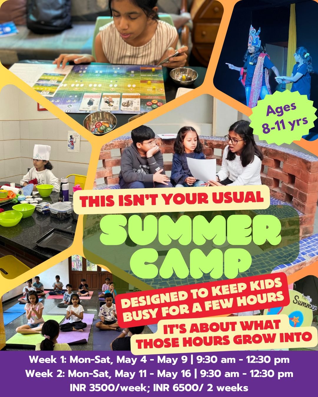 Discover a summer camp where you don't just pack kids off for the day, but where they start to unpack who they are.Every morning at The Hive (9:30 AM – 12:30 PM), 8 - 11 year olds will move through experiences that blend a variety of disciplines including theatre, communication, fine arts & creativity, health & wellbeing, business & finance, environment & sustainability... without it ever feeling like a class.* One day might begin with theatre exercises - loosening up, stepping into characters, learning to express without hesitation.* Another day, they’re designing their own board games - testing rules, negotiating with teammates, figuring out what makes something fun and fair.* On some mornings, they think like young entrepreneurs - inventing wildly imaginative products, pricing them, and pitching like a mini Shark Tank.* On other days, they turn into creators - sketching comic strips with clever twists, or building entire worlds through map-making that others must decode and explore.* On still other days, they are mock-recording podcasts where they question, debate, and find their voice, or enter a “What if?” lab where ideas stretch beyond the obvious.There will be moments of reflection too, through storytelling, journaling, or even reimagining history in today’s world.And in between all of this, they will pause, reset, and recharge through mindful breaks, light movement, and simple wellbeing practices.What looks like play on the outside is layered with:* communication & presentation* creative expression* financial & real-world thinking* collaboration & leadership* health & emotional awarenessNo worksheets. No pressure. No one-size-fits-all outcomes.Just a thoughtfully designed space where children explore, express, and grow - at their own pace, in their own way.📅 Dates:Week 1: May 4–9Week 2: May 11–16⏰ Time: 9:30 AM – 12:30 PM💰 ₹3500/ any one week | ₹6500 (both weeks) Facilitated by subject experts, and assisted by energetic co-facilitators!⚡ Limited seats. Register at: https://forms.gle/VQYkLgbkMeHuX1GFA 📩 DM 98983-38683 for inquiries.